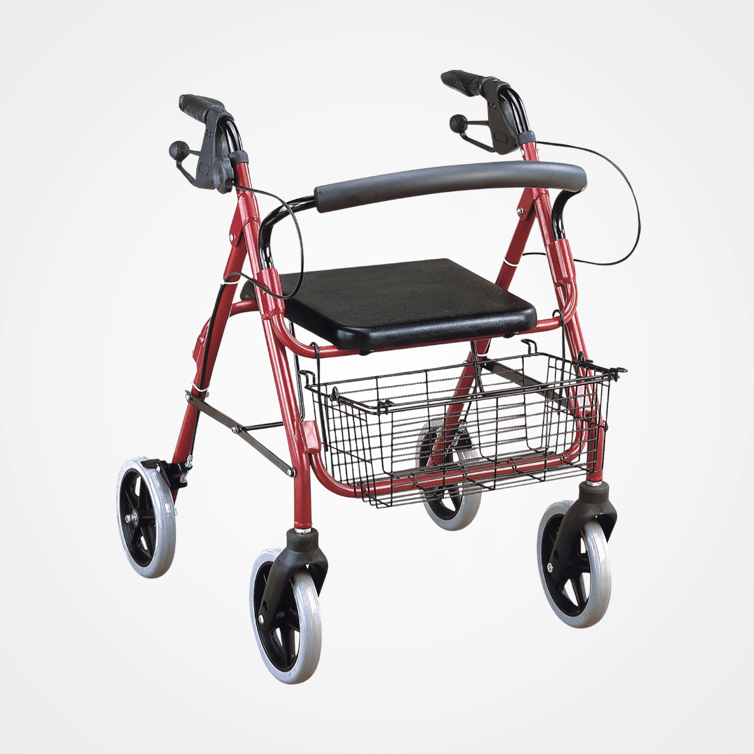 El Andador de Acero con Cesta IMEC105 ofrece soporte estable y seguro para personas con movilidad reducida, combinando resistencia, practicidad y facilidad de uso. Fabricado con marco de acero pintado al polvo en color rojo, cuenta con una cesta integrada también en acero, ideal para transportar objetos personales o compras pequeñas. Está equipado con ruedas delanteras y traseras sólidas de 8″, freno unificado en el manillar y respaldo abatible para un manejo seguro y cómodo. Diseñado para soportar hasta 20 kg de carga, es una solución versátil tanto en interiores como exteriores.