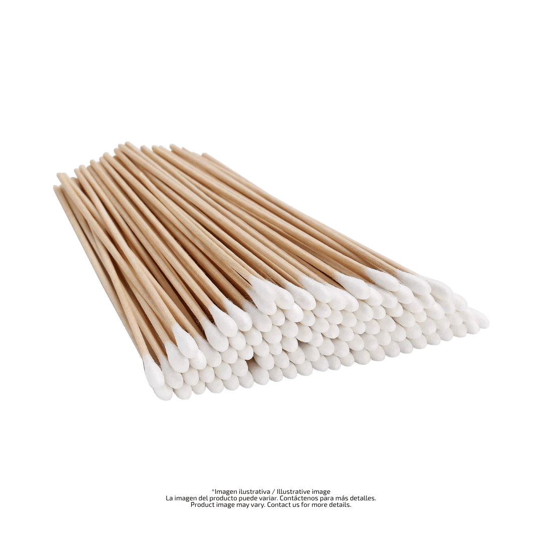 Aplicadores con Algodón 6” (15 cm) para toma de muestras y aplicación de soluciones. Punta absorbente y mango rígido (madera o plástico). Presentaciones a granel o individuales. Producto desechable de uso único.