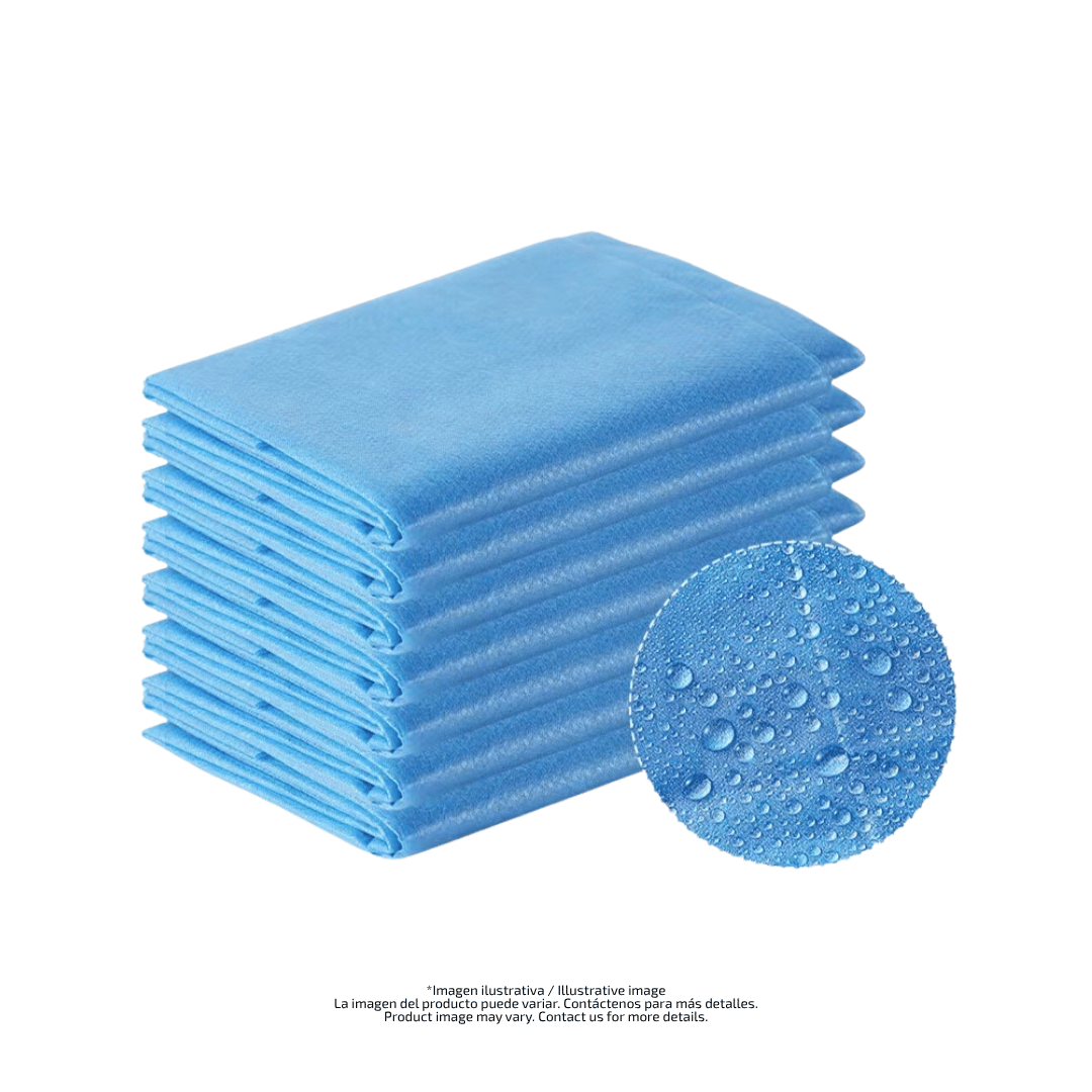 Sábana desechable impermeable de 55 g con elástico perimetral, medida 0,80 × 2,00 m. Presentación en bolsa por unidad para una manipulación higiénica. Ideal para proteger camillas en consultorios, clínicas y áreas de estética.