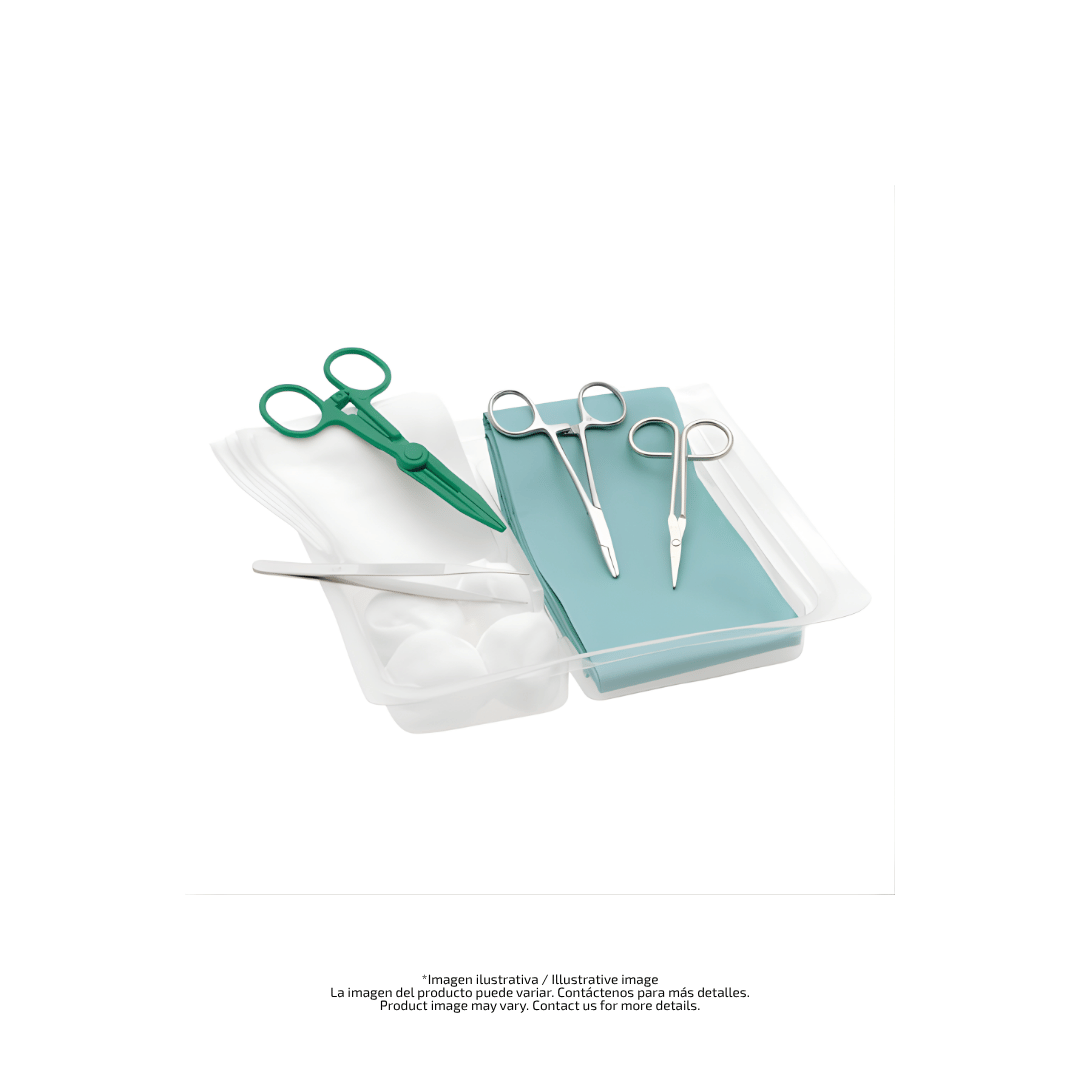 Set desechable para remover puntos de sutura con pinza de metal y bandeja. Estéril y de un solo uso, listo para emplearse en consultorios y áreas de curación. Minimiza riesgos de contaminación cruzada y agiliza el procedimiento de retirada de suturas.