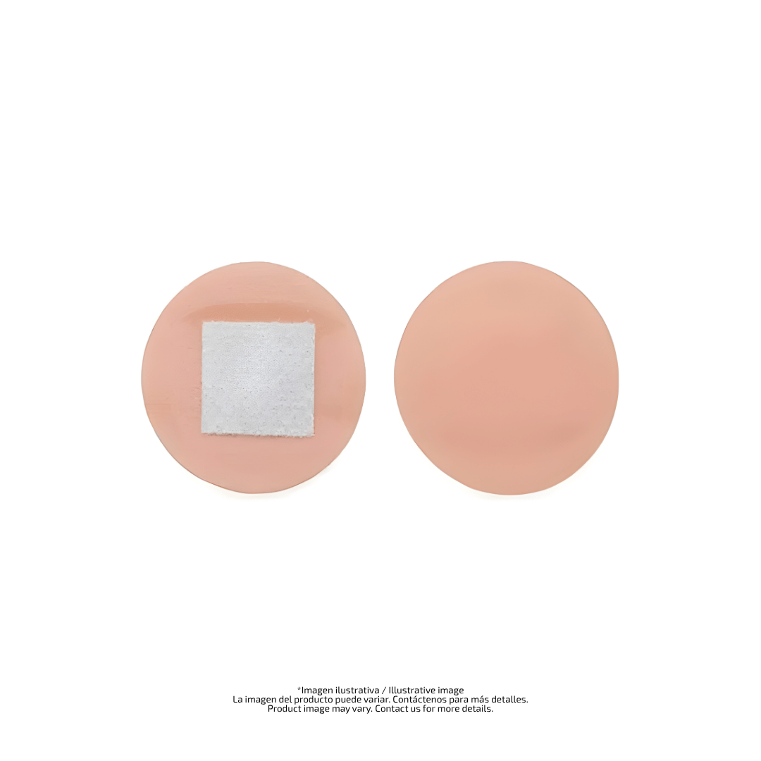 El formato redondo de 7/8″ (≈ 22 mm de diámetro) mejora el sellado periférico y la comodidad en zonas móviles. Ideal para entornos clínicos, vacunatorios, laboratorios y botiquines de primeros auxilios.